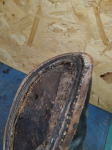 反り上がって変形した中床をオールソール交換と同時に換装することで反りが無くなり本来の履き心地に戻ります